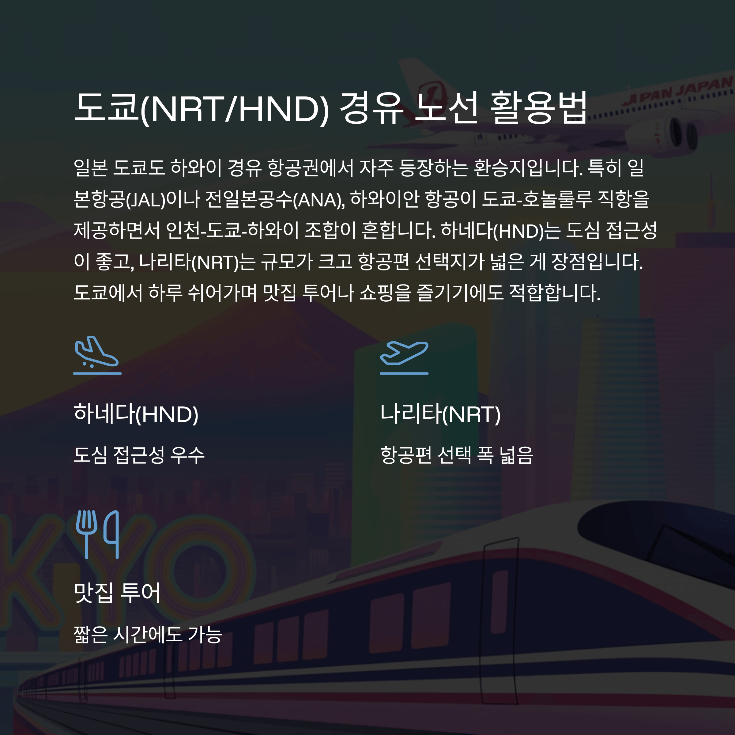 도쿄(NRT/HND) 경유 노선 활용법