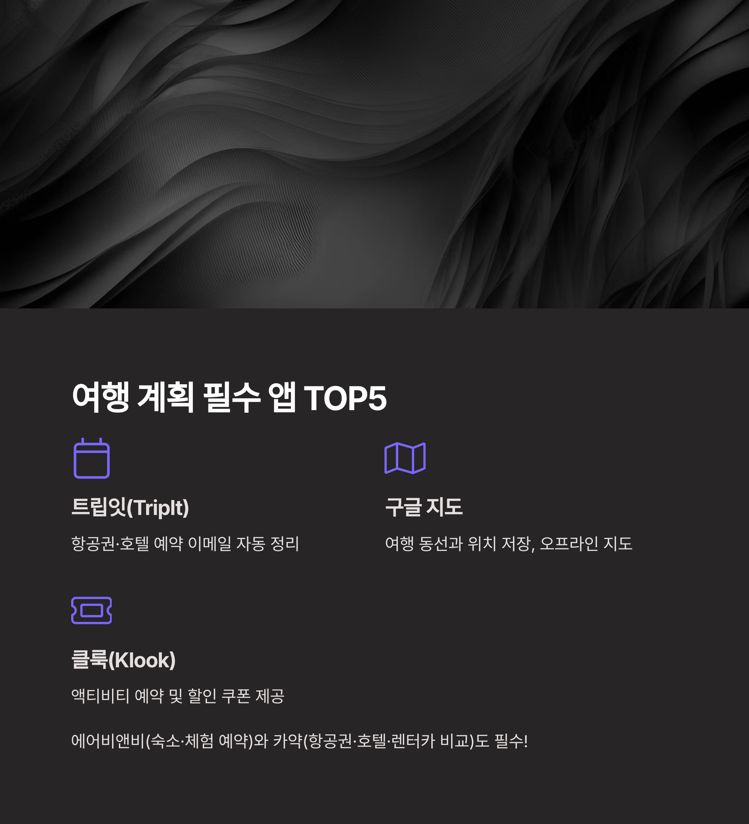 | 트립잇(TripIt) | 항공권·호텔 예약 이메일 자동 정리 |