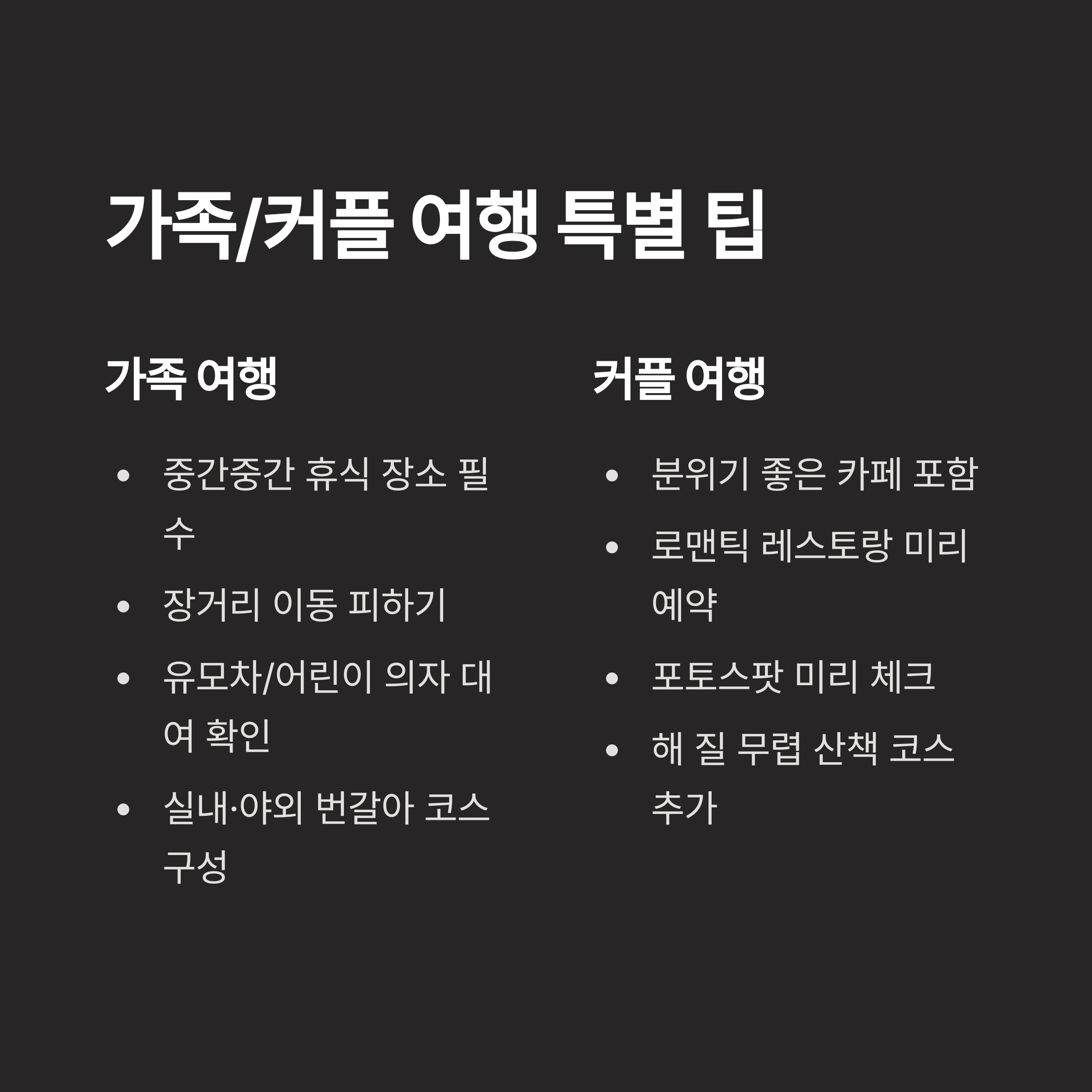 가족/커플 여행일정 팁