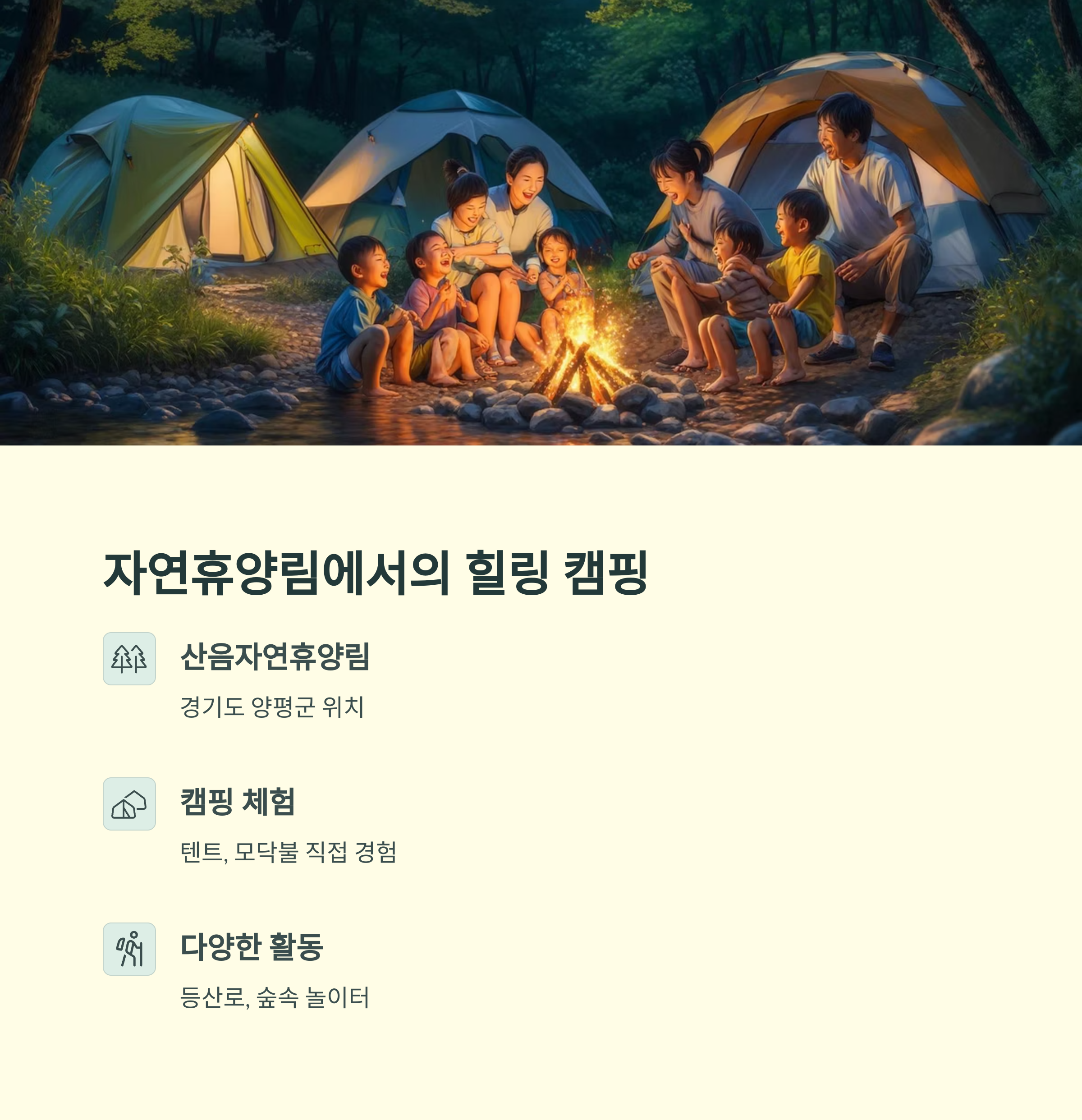 자연휴양림은 맑은 공기와 푸른 숲 속에서 가족 모두가 휴식을 취하며 자연을 만끽할 수 있는 장소입니다.