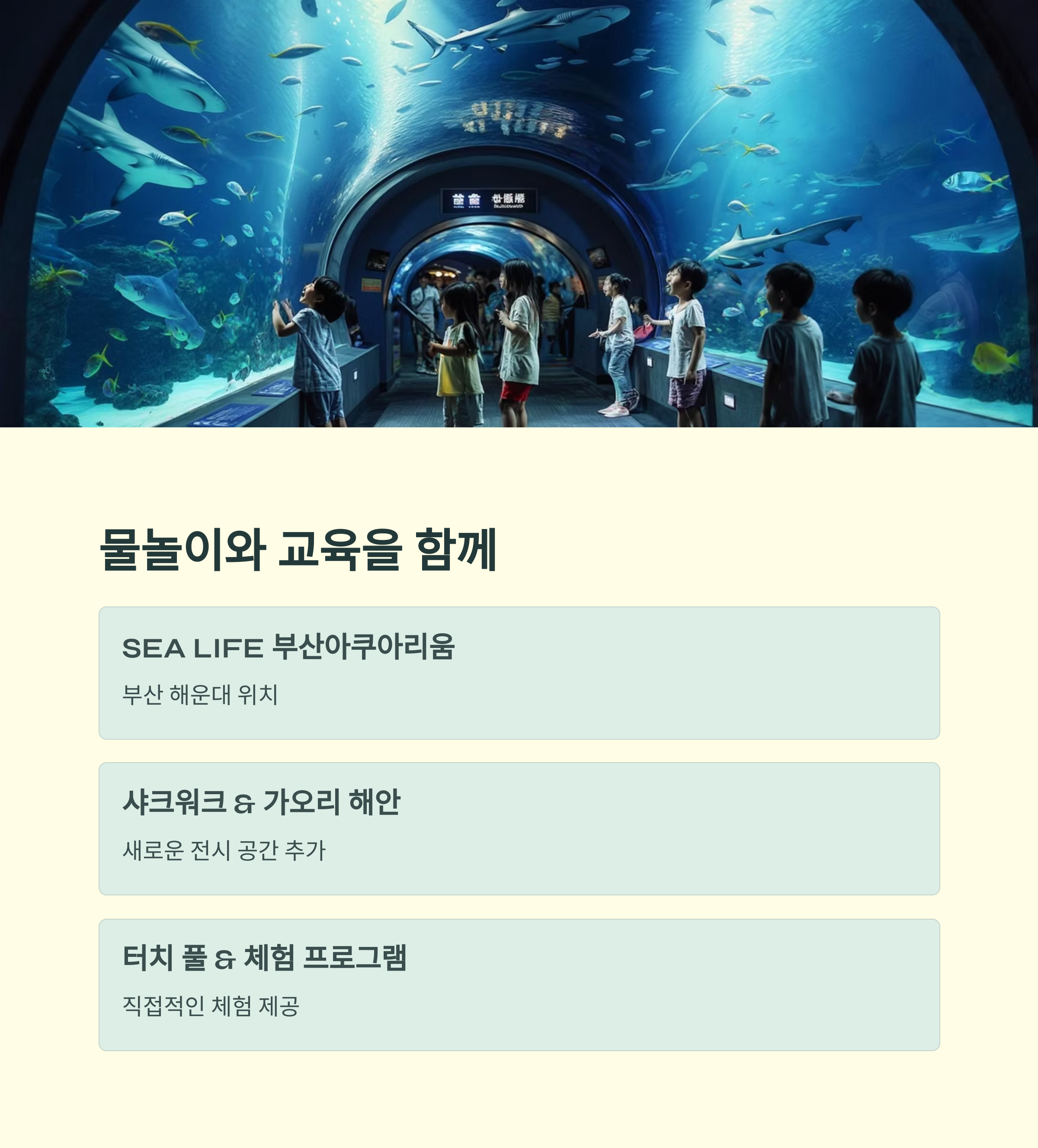 아쿠아리움은 단순한 수족관을 넘어 교육적 가치와 놀거리가 공존하는 공간입니다.
