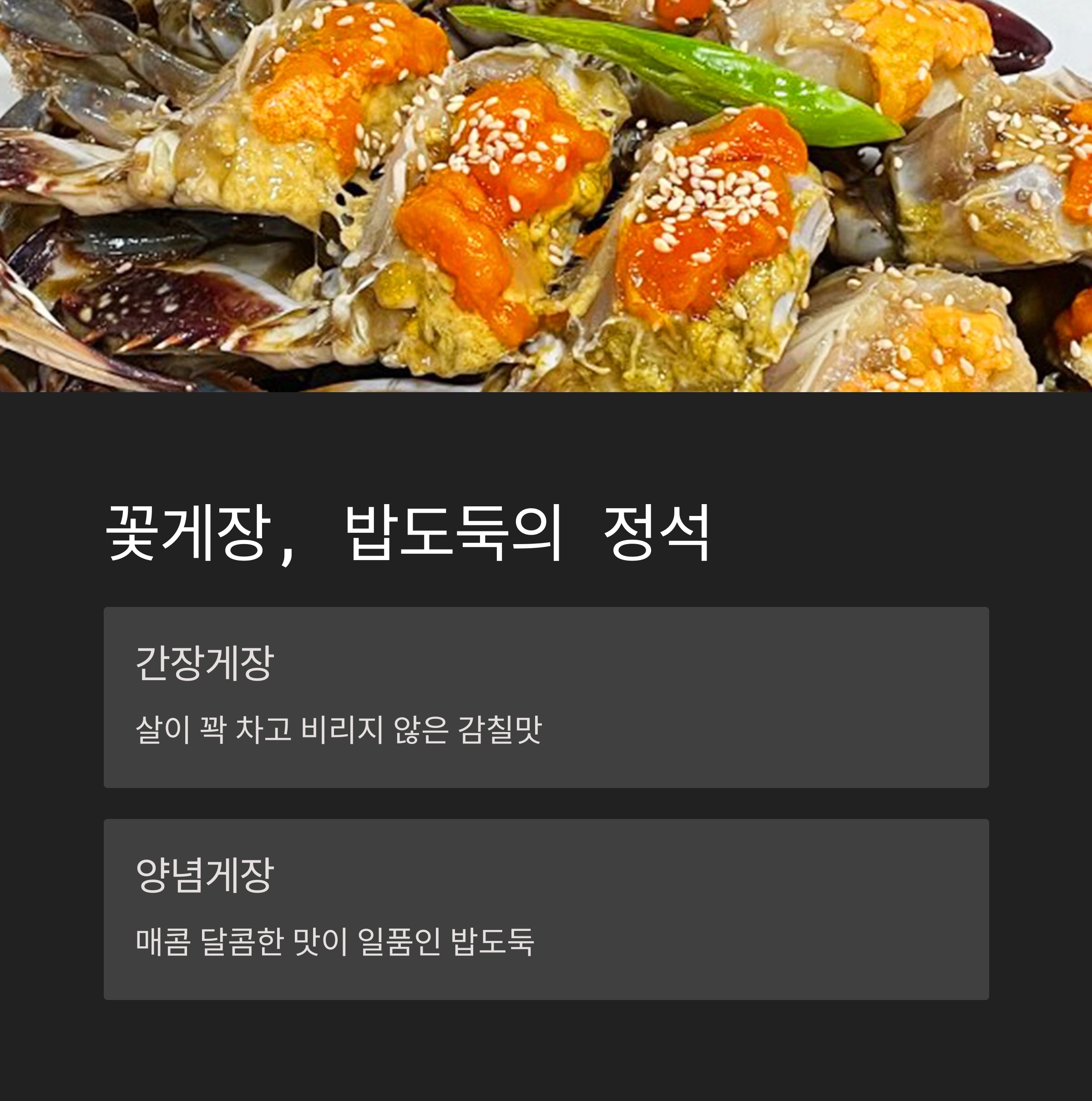 - 주요 메뉴: 간장게장 정식 28,000원 / 양념게장 정식 30,000원
