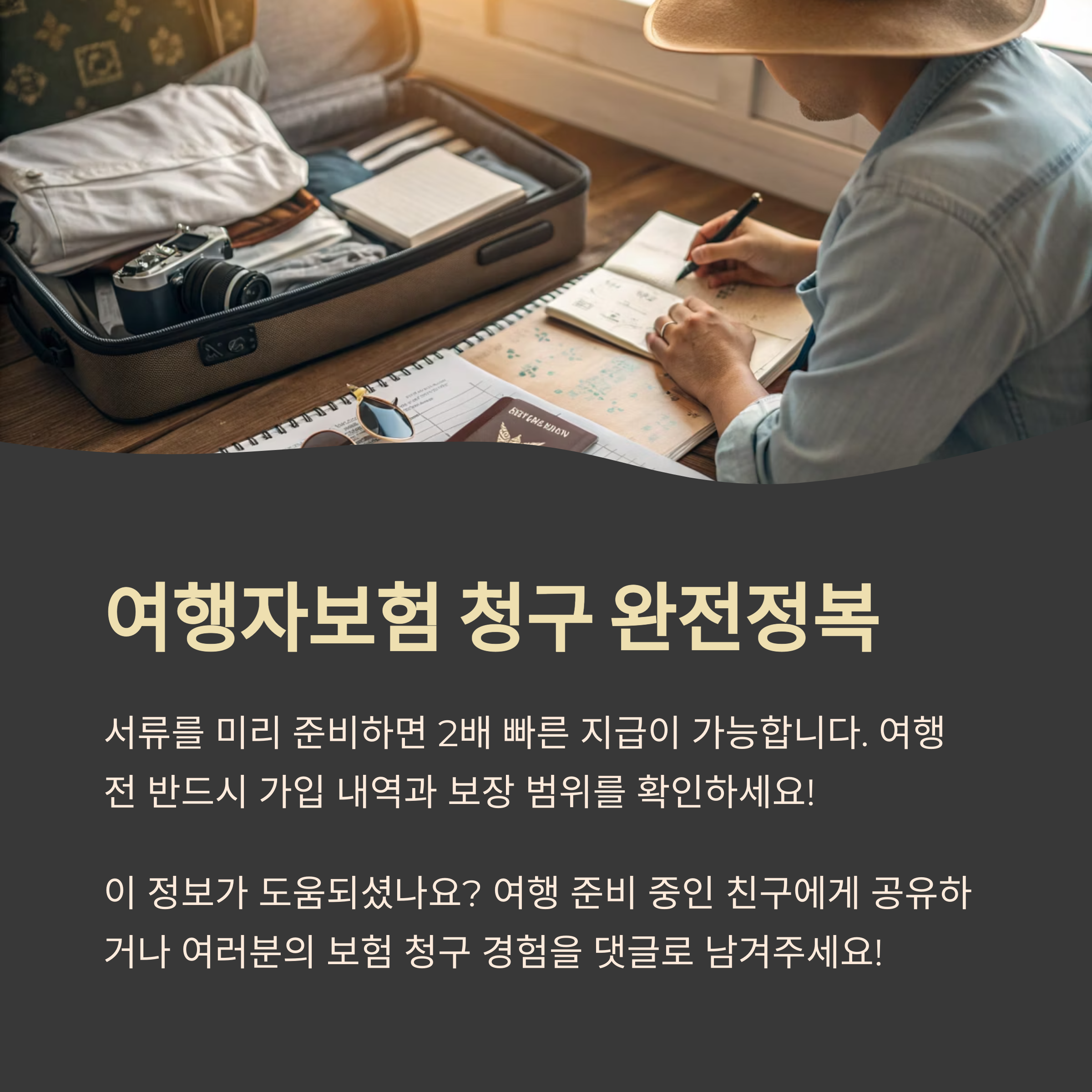 여행자보험, 가입은 쉬워도 청구는 어렵다고 느껴질 수 있어요. 하지만 오늘 함께 정리한 절차와 서류만 기억해 두면, 막상 사고가 생겨도 당황하지 않고 현명하게 대처할 수 있답니다. 혹시 아직 여행을 계획 중이시라면, 미리 서류 챙기는 법도 숙지해 두세요. 그리고 이 정보가 유익했다면 주변 사람들과 공유도 부탁드려요. 여행은 예측할 수 없지만, 준비는 언제나 우리가 할 수 있는 최고의 대비니 까요!