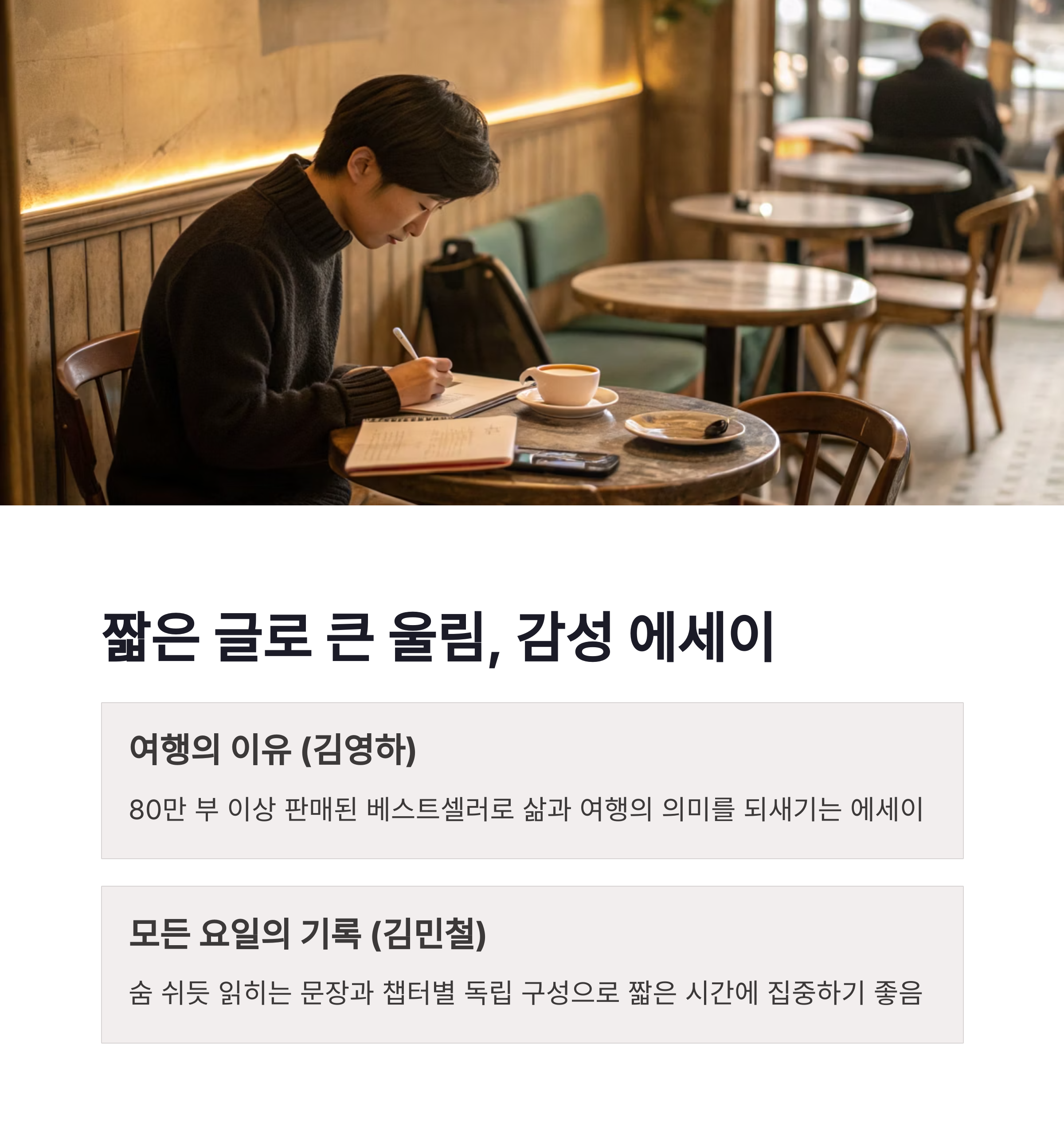 여행 중에는 길고 복잡한 이야기보다 짧고 감성적인 에세이가 딱입니다.