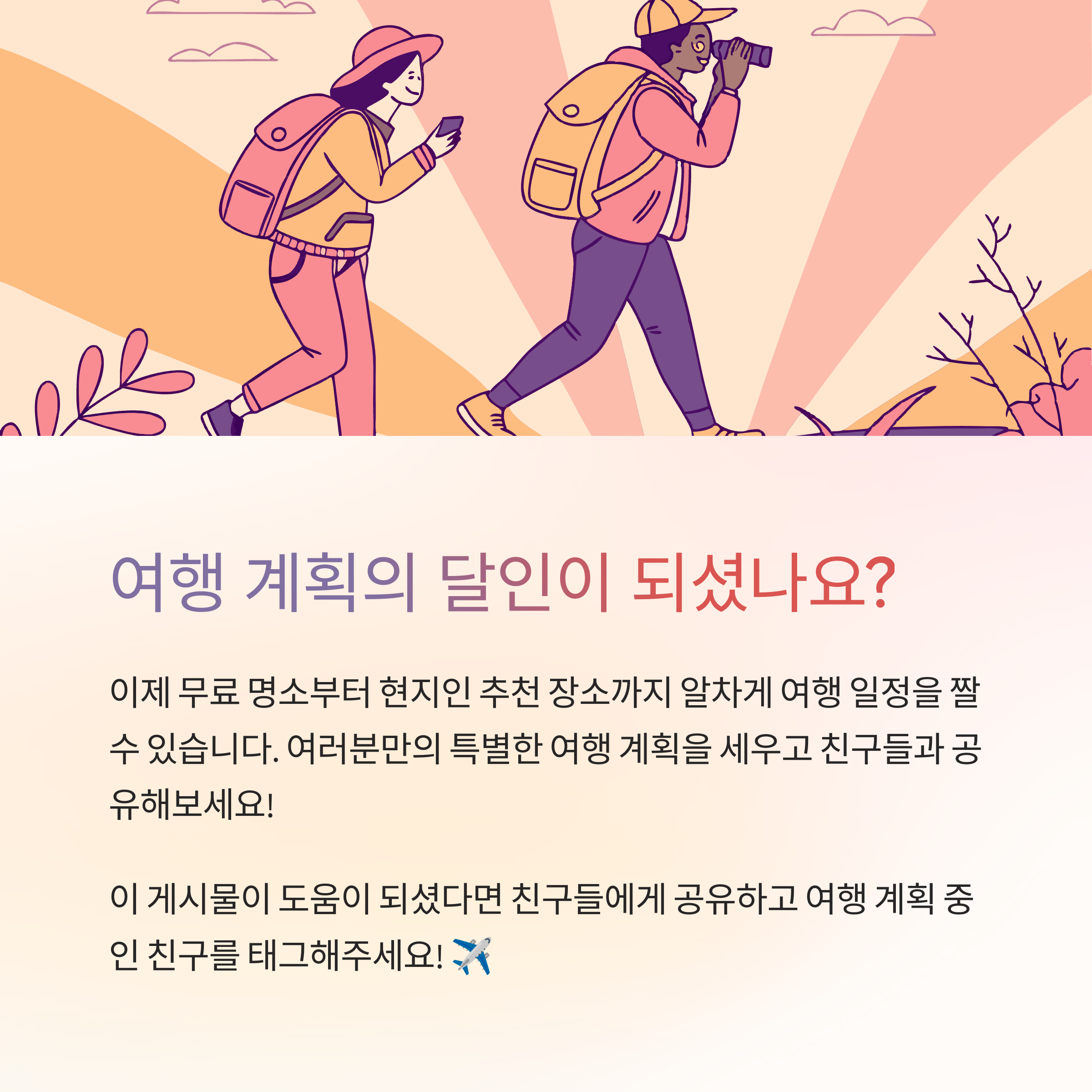 | 혼자 여행 | 1~2곳 + 자유 시간 | 자율성·자기만의 시간 중요 |