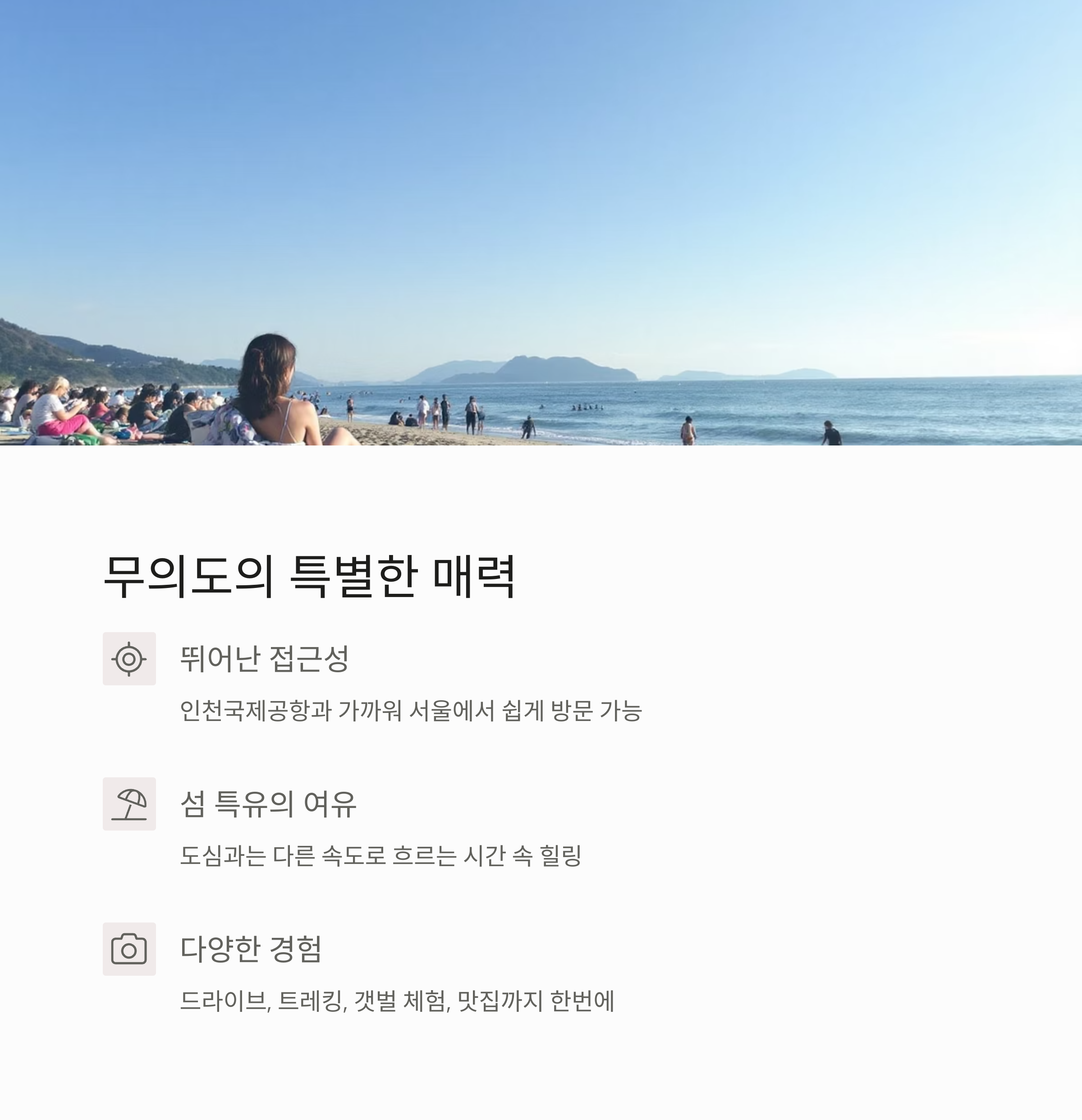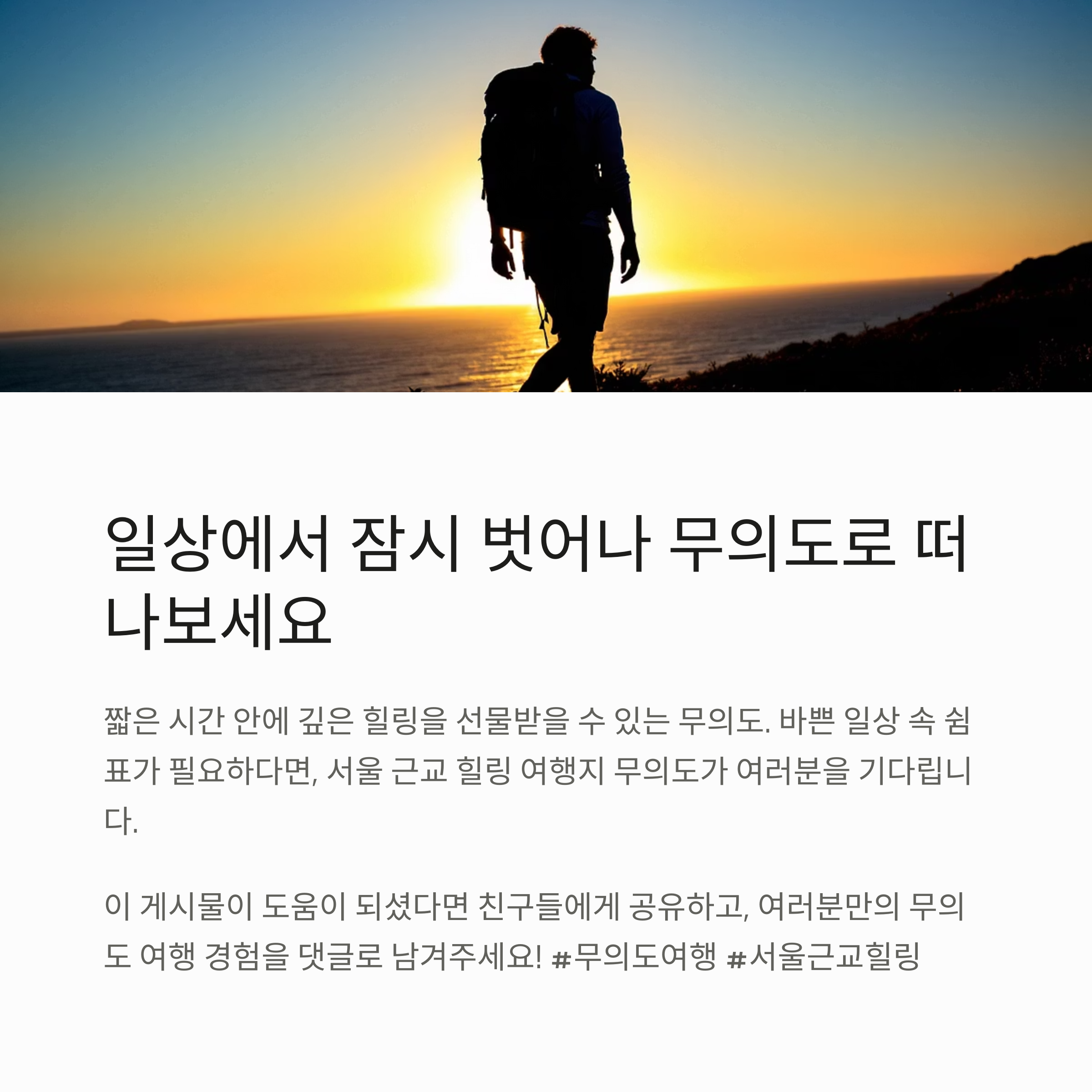 "일상에서 잠시 벗어나고 싶다면, 서울 근교 힐링 여행지 무의도로 떠나보세요."