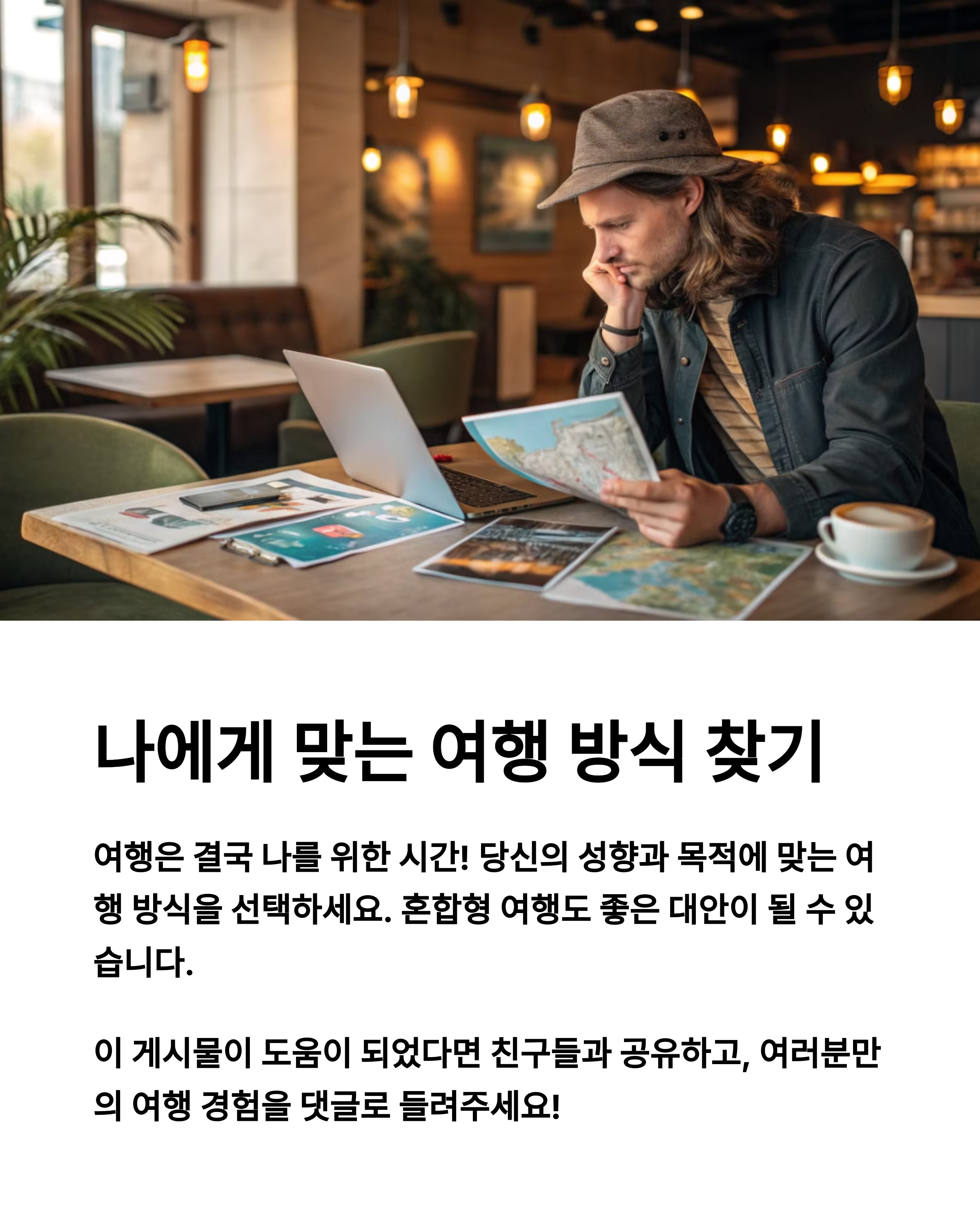 오늘은 자유여행과 패키지 여행, 두 가지 여행 방식의 장단점을 비교해봤어요. 여행은 결국 자신에게 가장 잘 맞는 방식으로 떠나는 게 최고라는 사실, 잊지 마세요. 여러분은 어떤 스타일의 여행을 더 선호하시나요? 댓글로 여러분의 경험과 꿀팁도 나눠주세요! 함께 여행 이야기로 소통해보는 것도 여행의 또 다른 재미 아니겠어요?