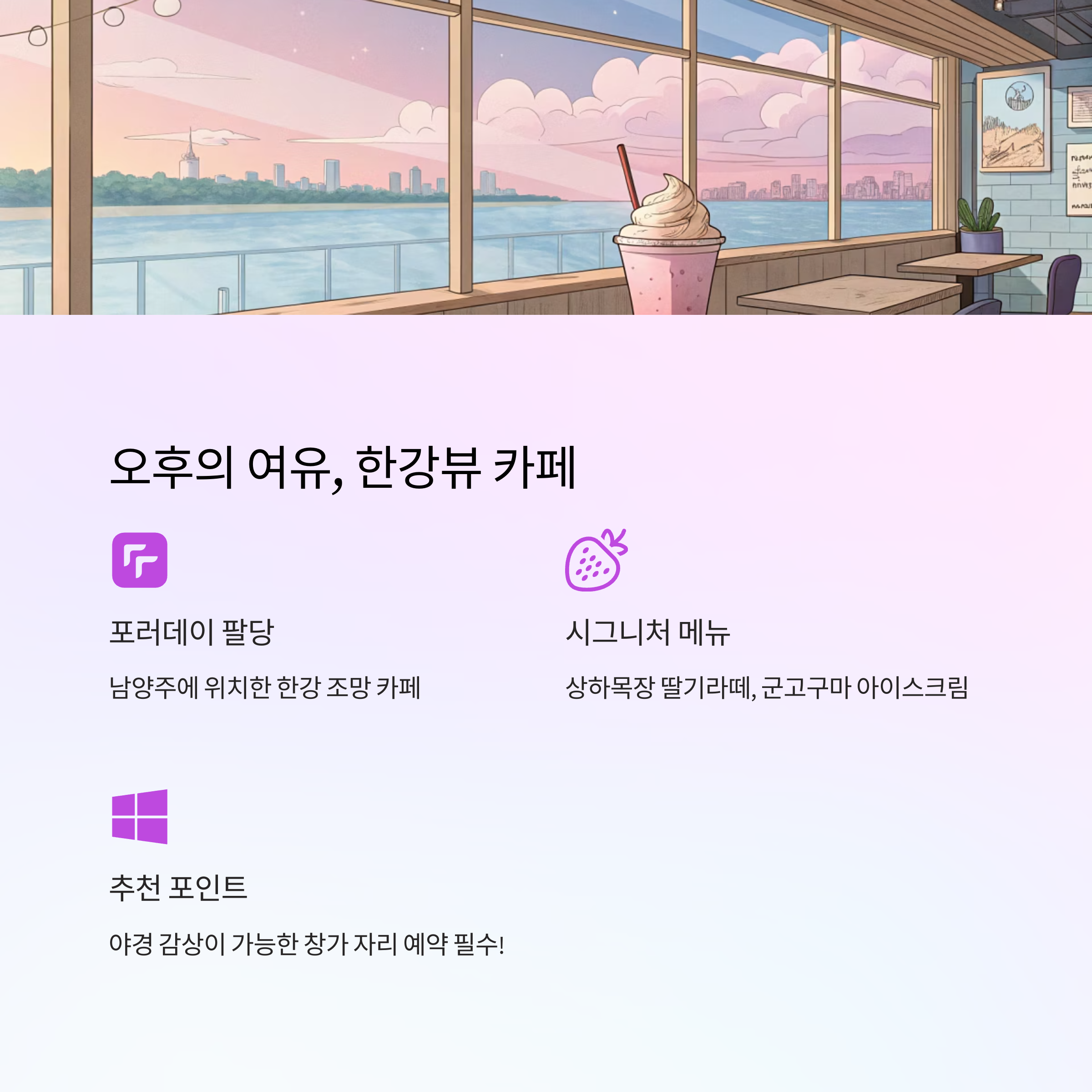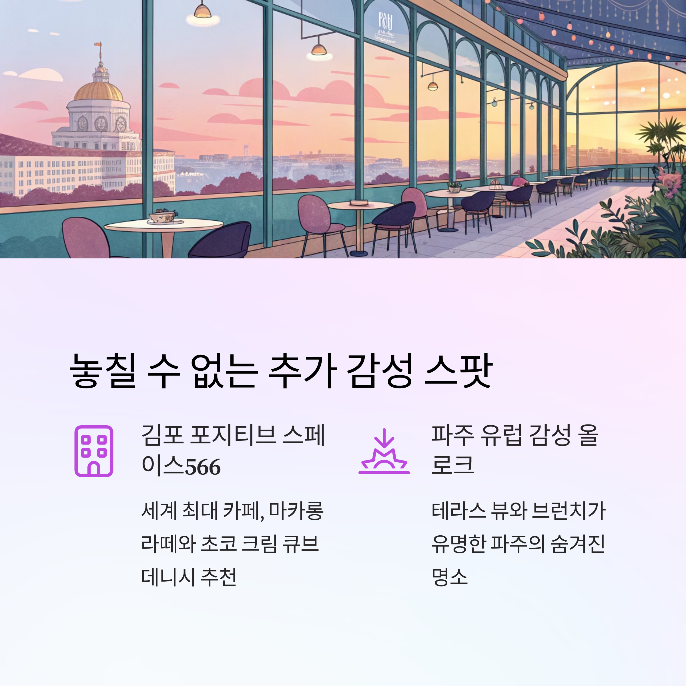 하루 만에 감성 카페를 정복하는 건 쉬운 일이 아니지만, 이렇게 계획을 세워두면 진짜 가능해져요. 오늘 소개한 동선 참고하셔서, 여러분도 나만의 감성 루트 만들어 보세요! 혹시 다녀오신 카페 중에 더 추천하고 싶은 곳 있으시면 댓글로 공유해 주시면 정말 감사할 것 같아요. 우리 같이 감성 여행 떠나요 ☕💜