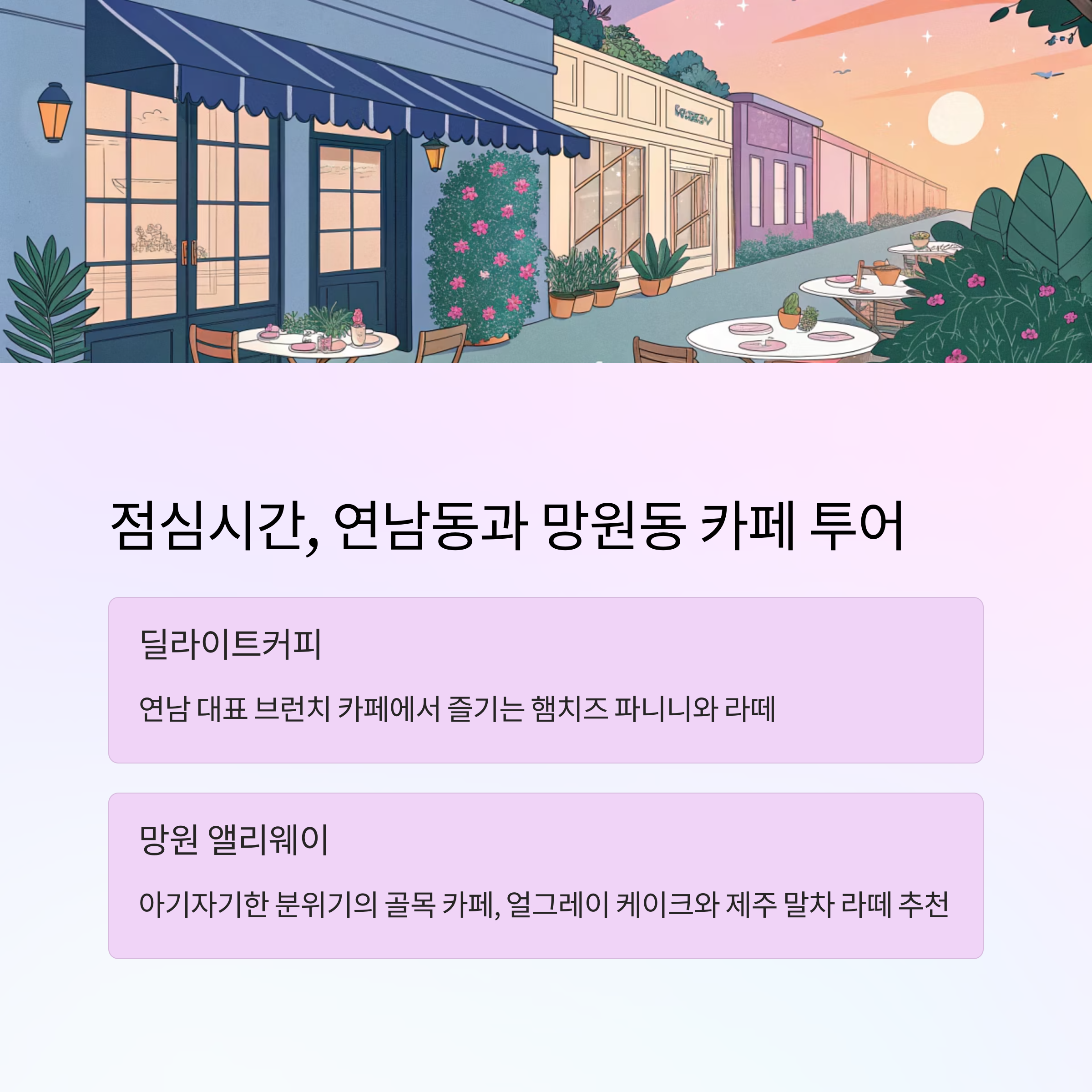 - 연남 → 개성 있는 카페들 투어