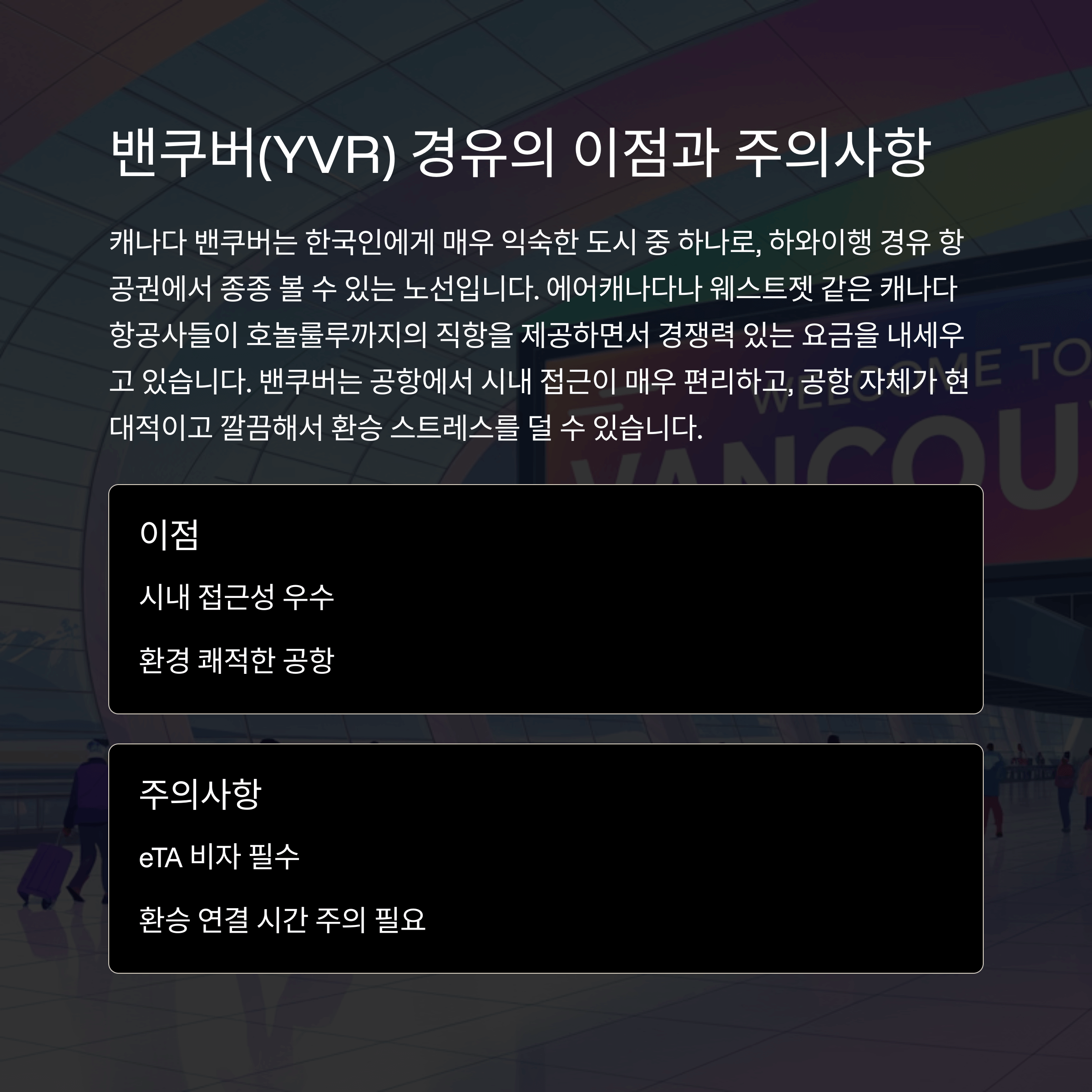 밴쿠버(YVR) 경유의 이점과 주의사항