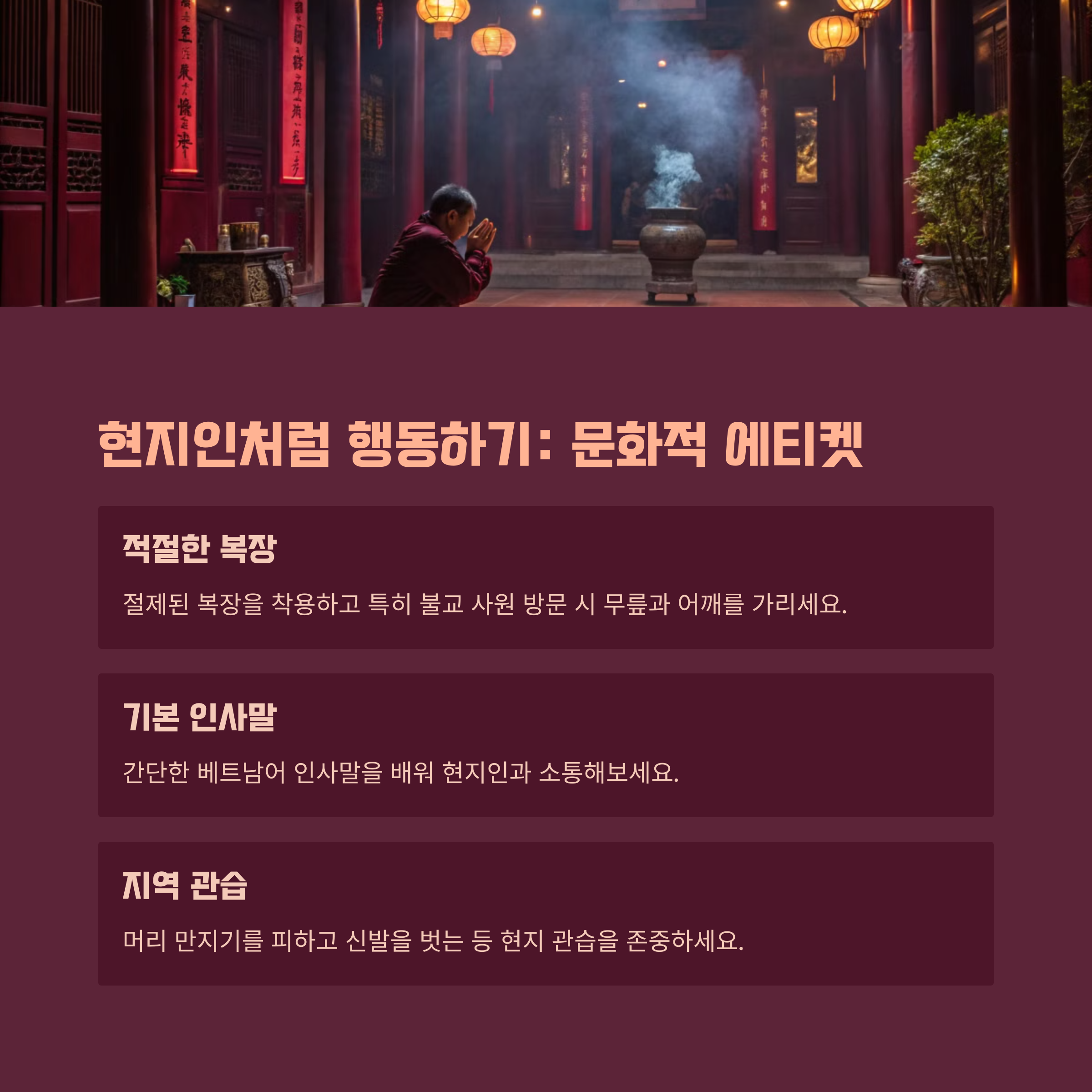 | 문화 차이 | 예절이나 복장 관련 팁도 꼭 알고 가세요. |