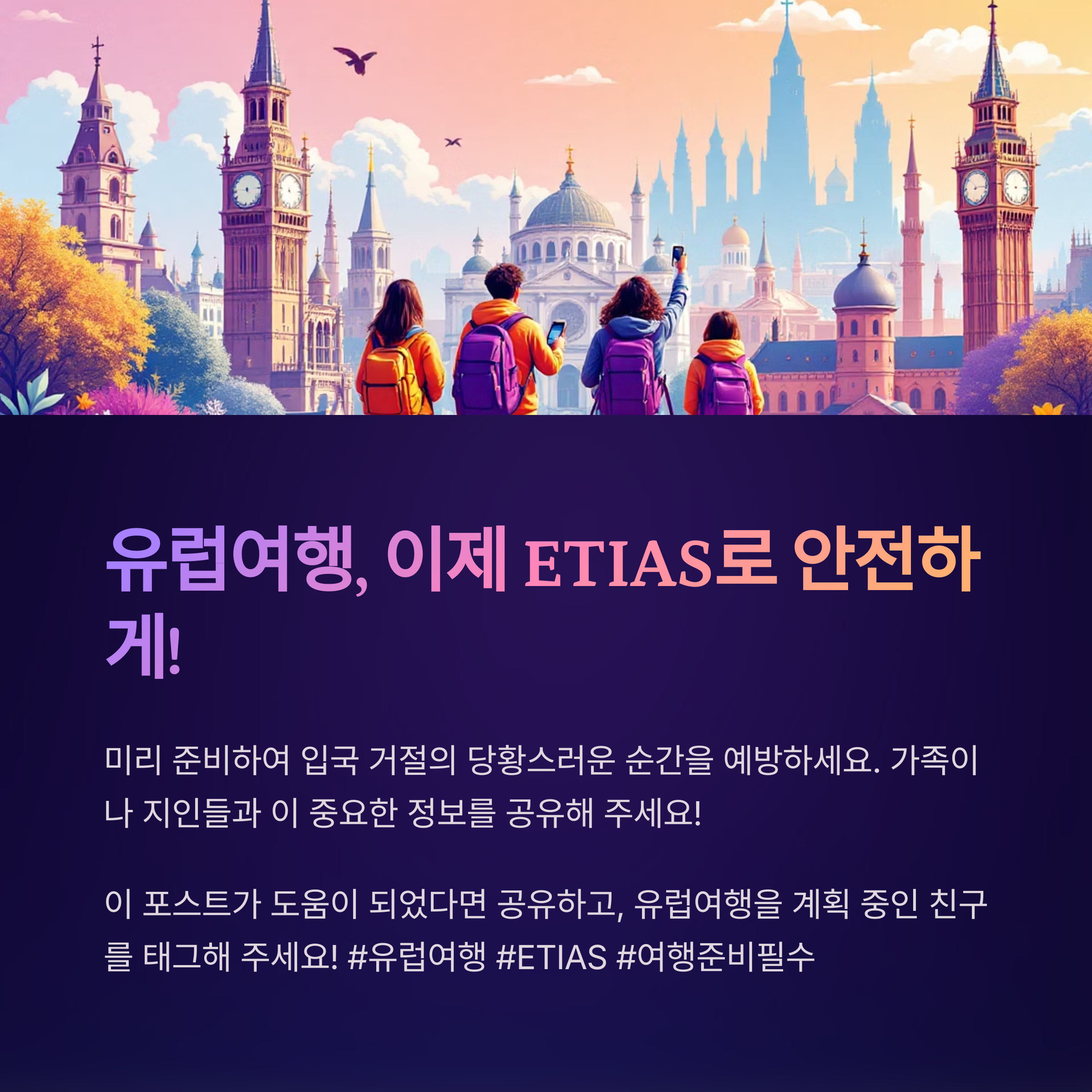 ETIAS는 단순한 종이절차가 아닌, 유럽연합의 안전과 질서를 위한 새로운 기준입니다. 이전처럼 ‘비자 면제 국가니까 괜찮겠지’ 하는 생각은 이제 통하지 않아요.