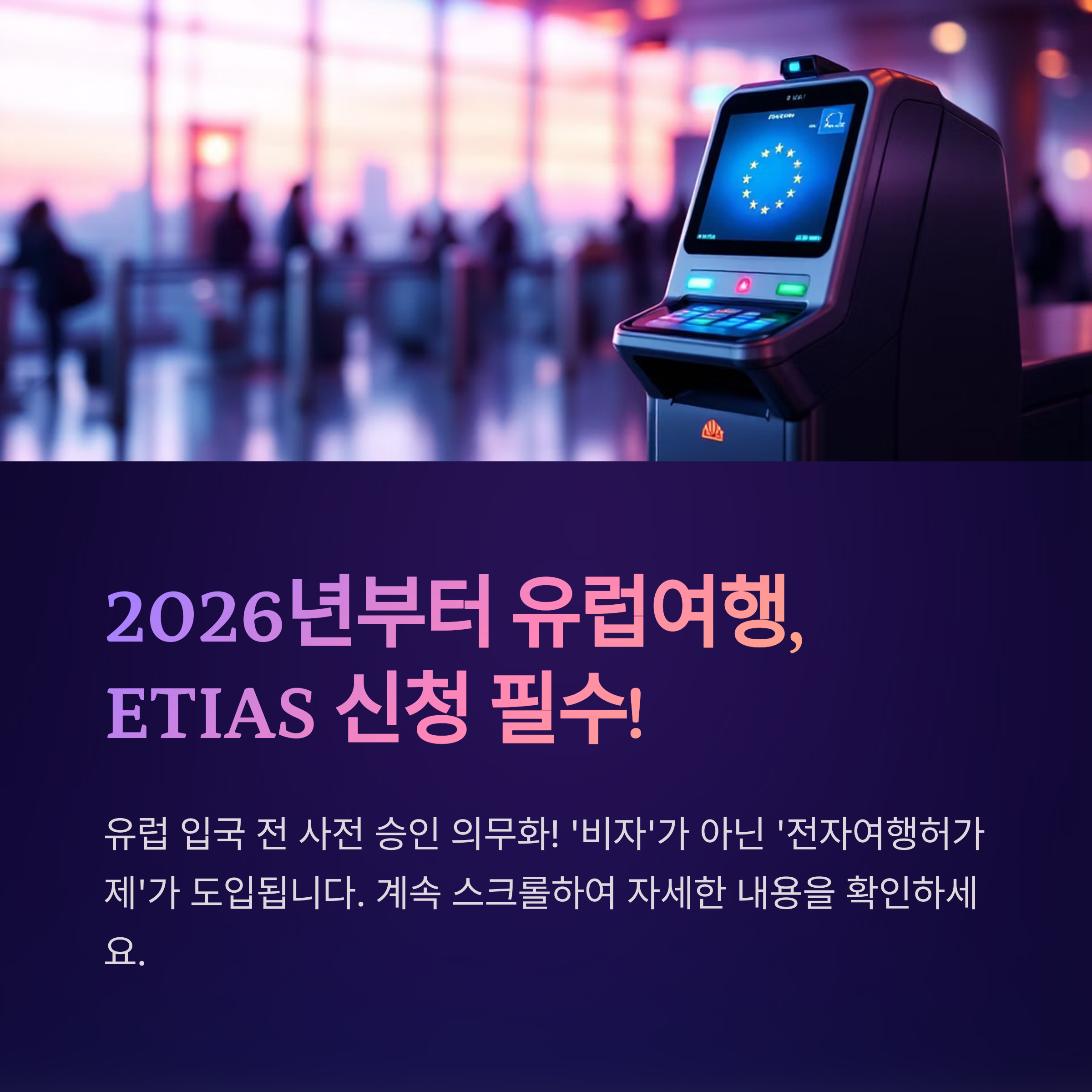 ETIAS는 "European Travel Information and Authorisation System"의 약자로, 유럽연합(EU)이 자국 입국을 보다 안전하게 관리하기 위해 도입한 사전 전자 여행 허가 제도입니다. 기존에는 비자 없이도 자유롭게 입국이 가능했던 국가들(한국 포함)도 이제는 여행 전 반드시 ETIAS 승인을 받아야 합니다.