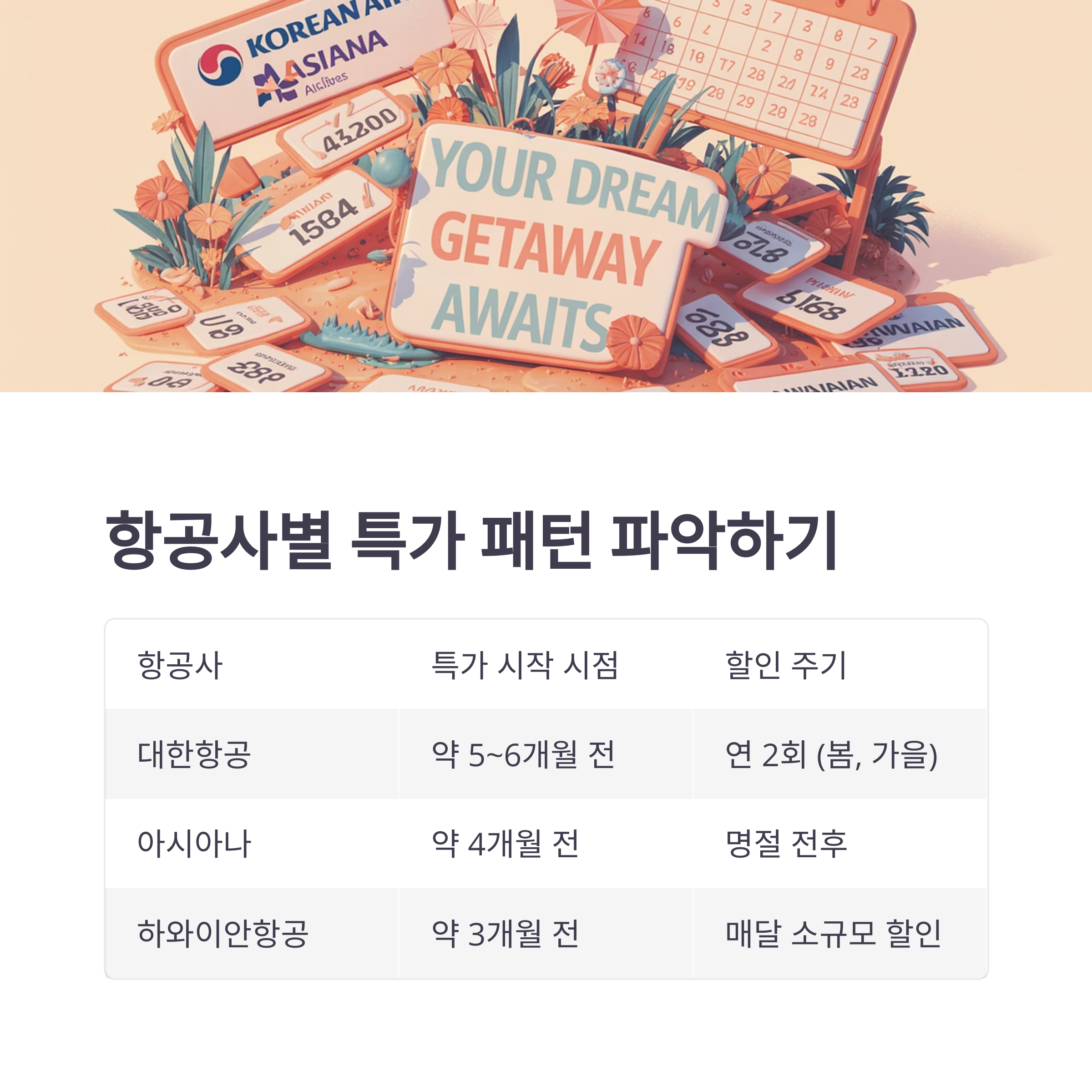 | 하와이안항공 | 약 3개월 전 | 매달 소규모 할인 |