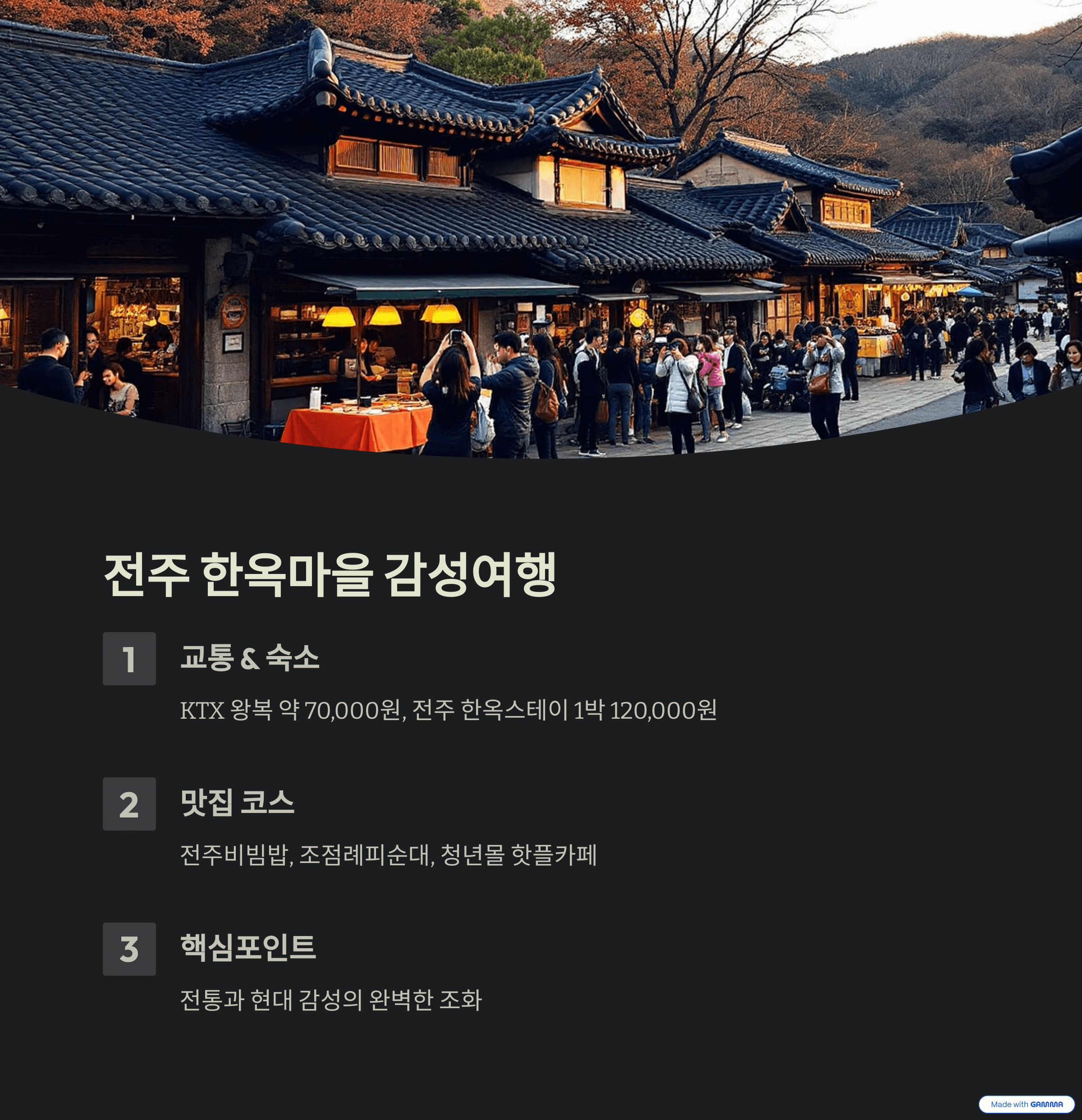 - 숙소: 전주 한옥스테이 1박 120,000원